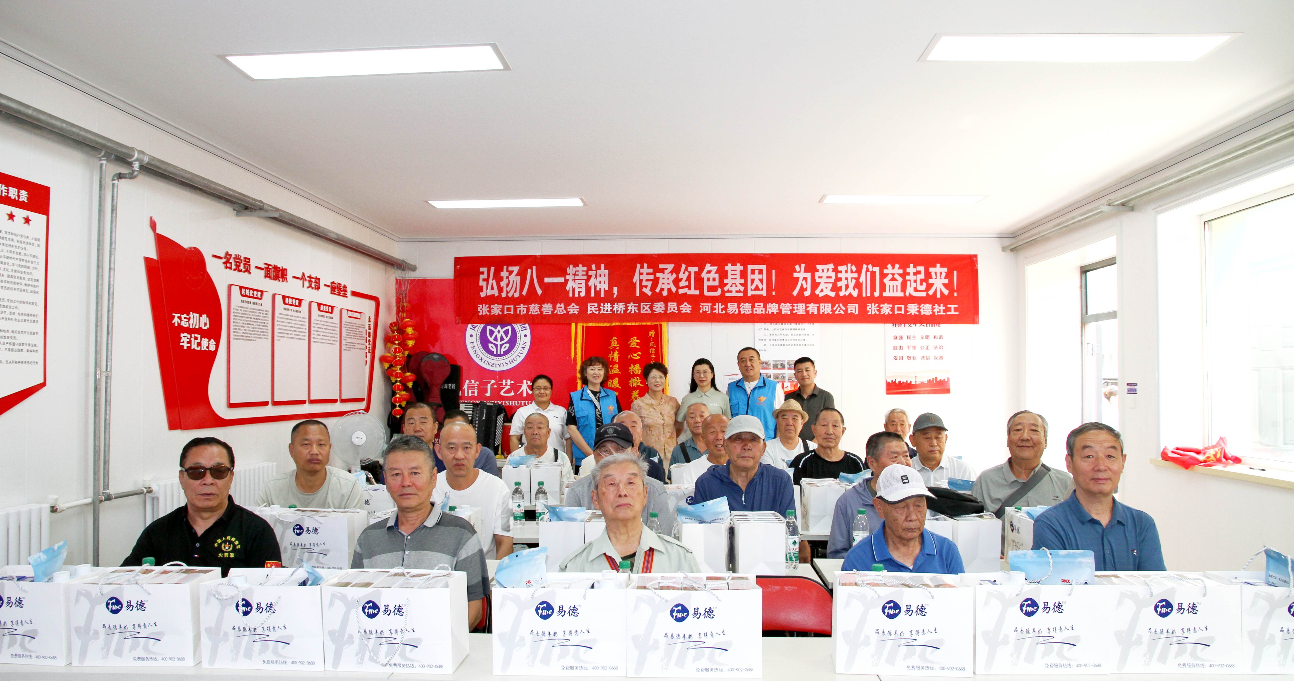 在“八·一”建军节即将到来之际,为传承拥军优属优良传统,向为国家和人民奉献青春的退伍老兵致以崇高敬意,7月31日,张家口市慈善总会联合副会长单位河北易德品牌管理有限公司,携手民进张家口桥东区委员会、桥东区工商联总商会、张家口秉德社会工作发展中心,带着精心准备的羊奶制品等慰问物资,走进东河沿社区退役军人服务站,共同开展“致敬老兵