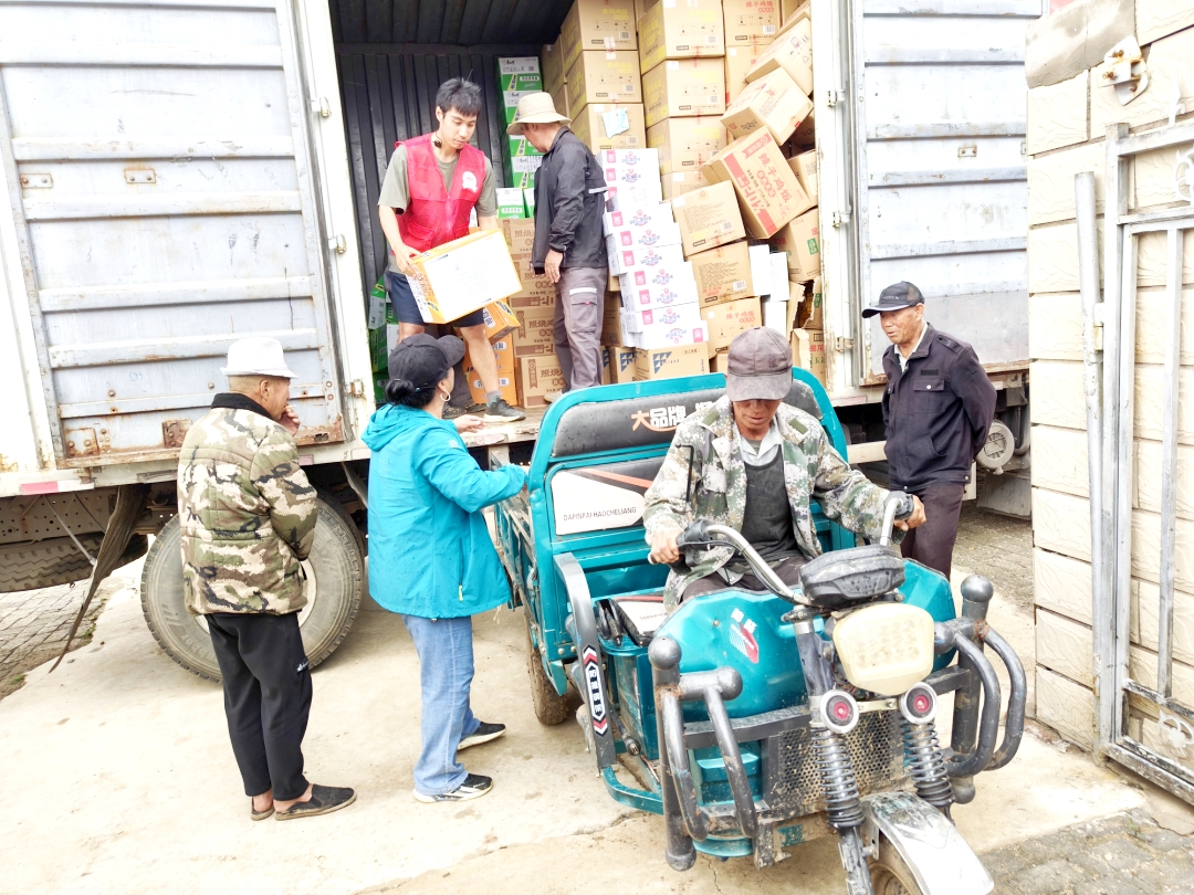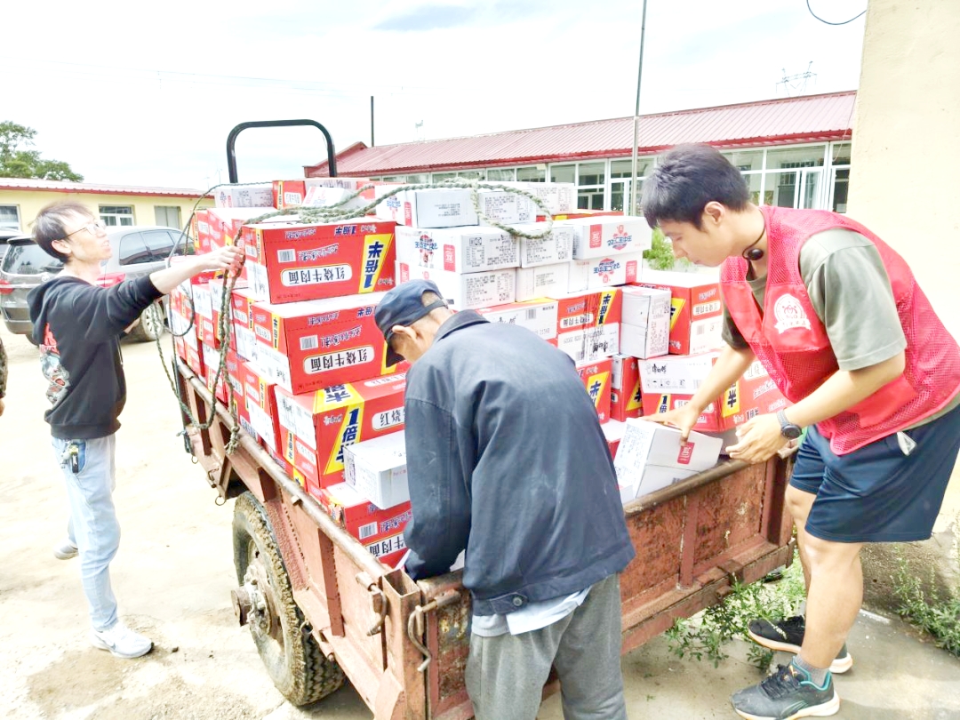 在物资运送至三台房村途中,因暴雨冲毁道路,运输车辆被迫绕行田间临时开辟的小路。行至一处泥泞路段时,满载物资的大货车深陷泥潭无法脱困。危急时刻,当地村民自发组织铲车、拖拉机参与救援,与志愿者们共同铺设防滑垫、挖掘排水沟。经过5个小时的不懈努力,物资被安全转移至村部,货车也成功脱险。村民们纷纷表示:“天灾无情人有情,感谢党和政府,感谢爱心企业的帮助!”