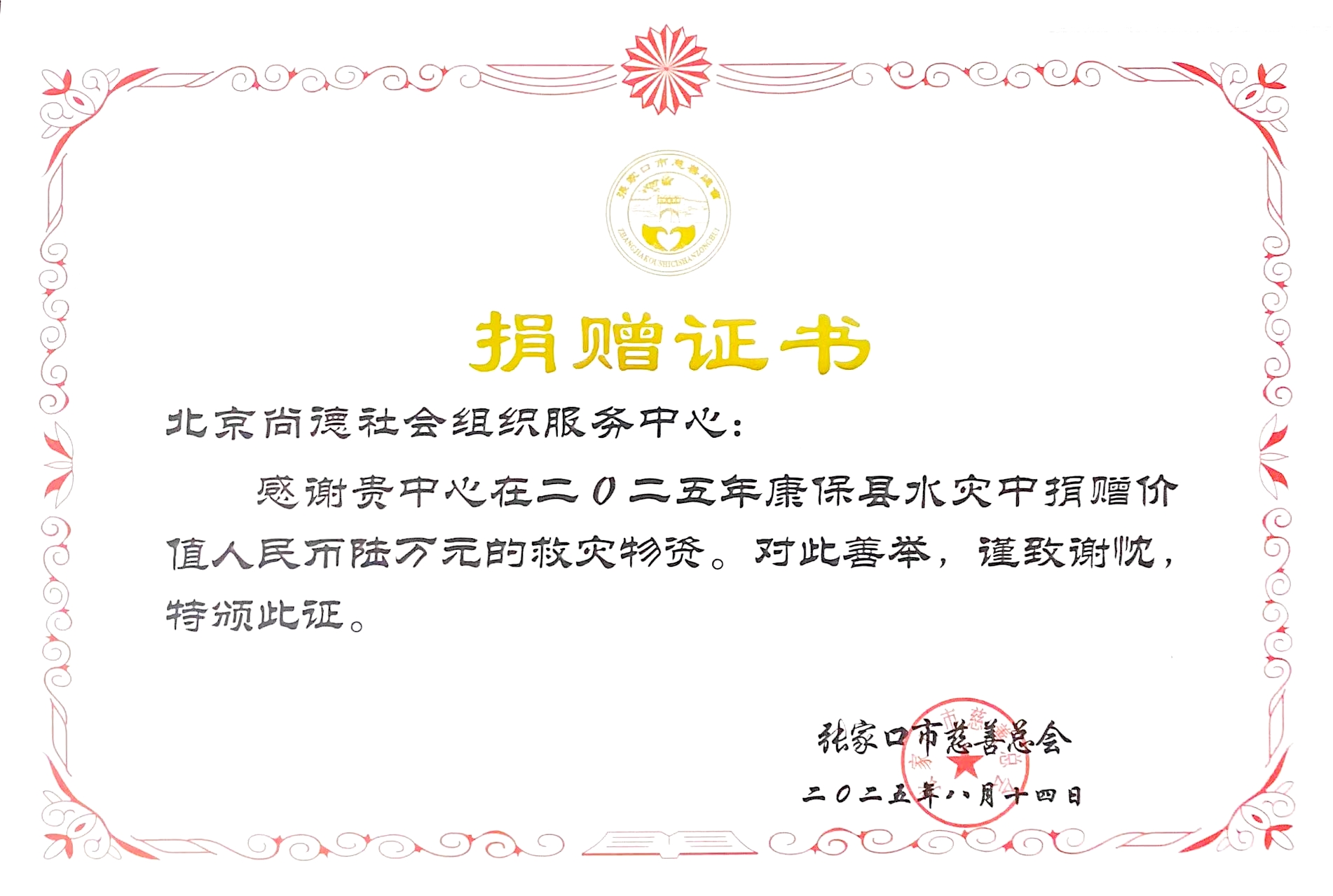 张家口市慈善总会 2025年8月18日