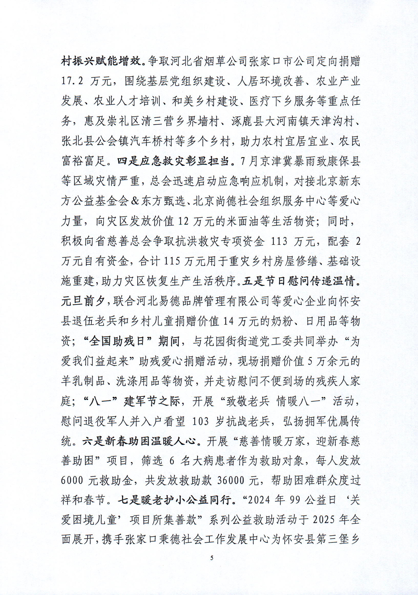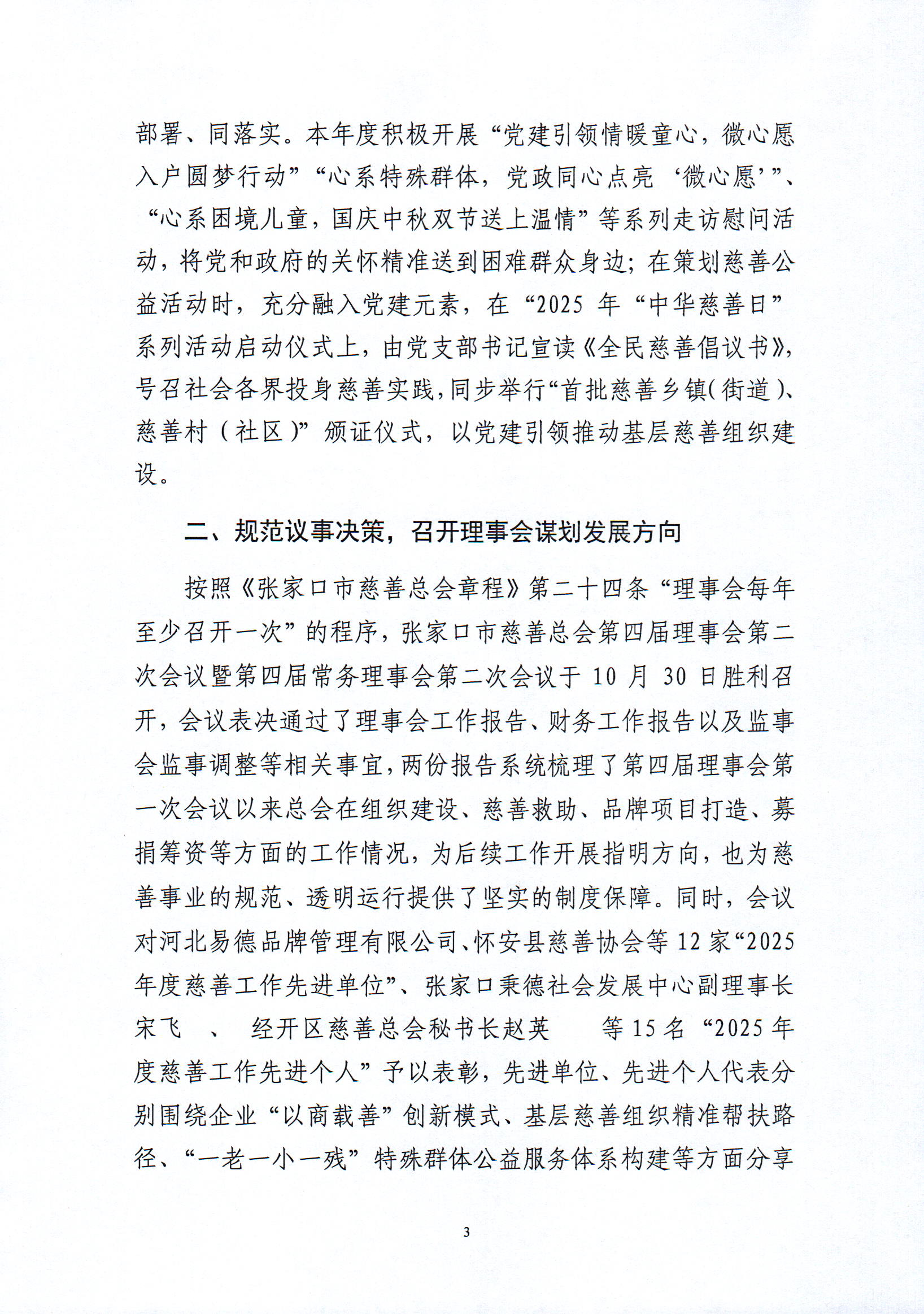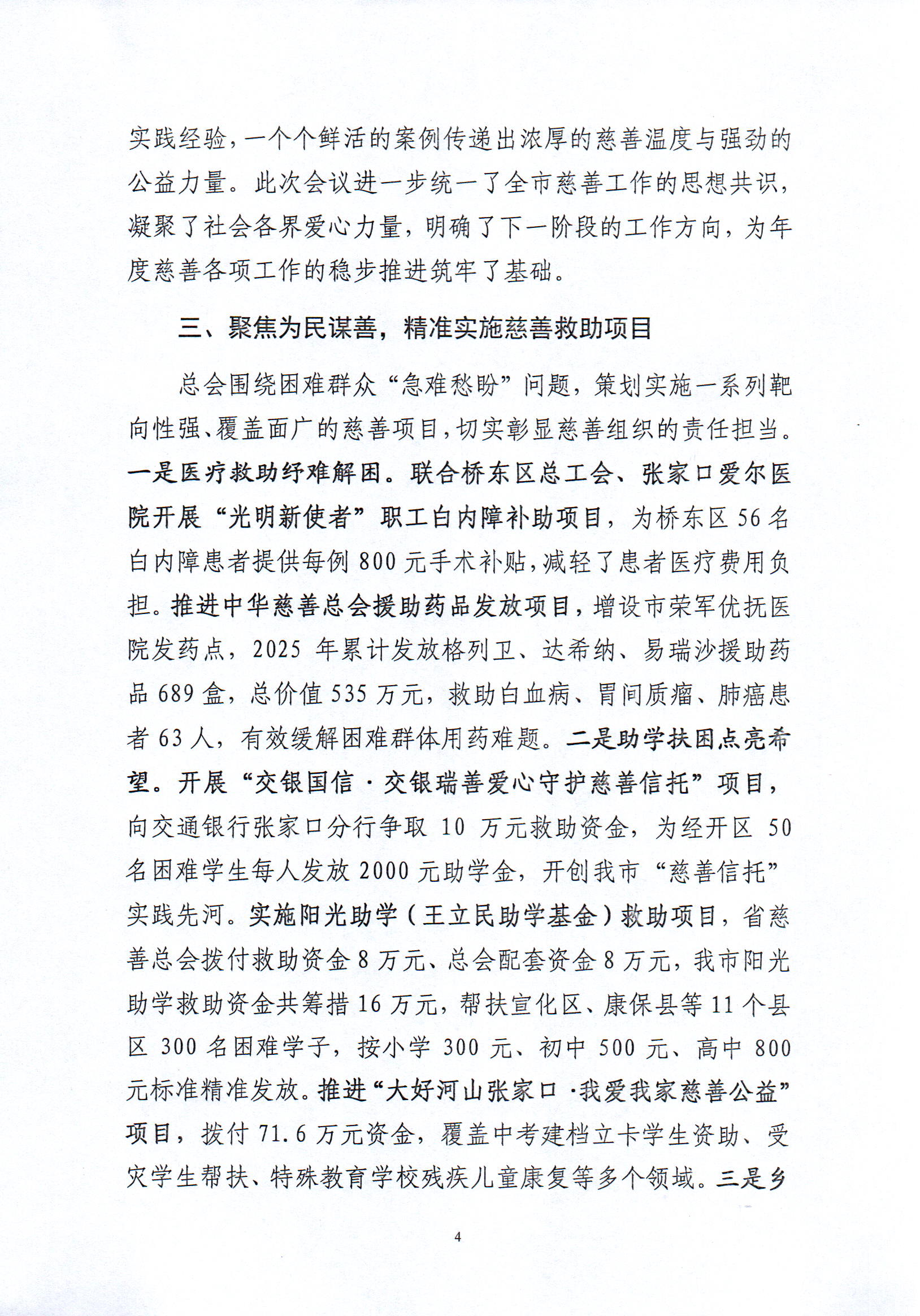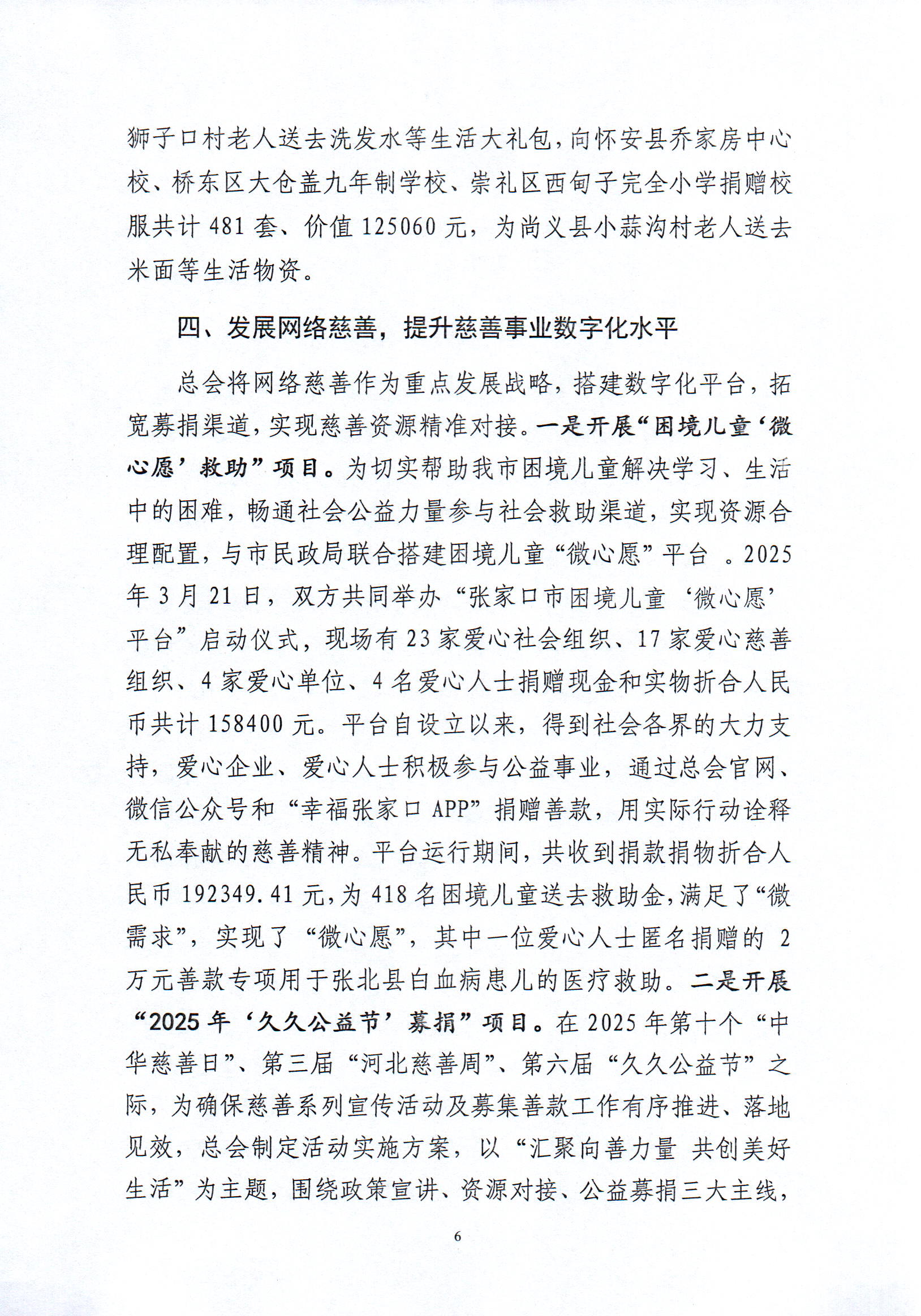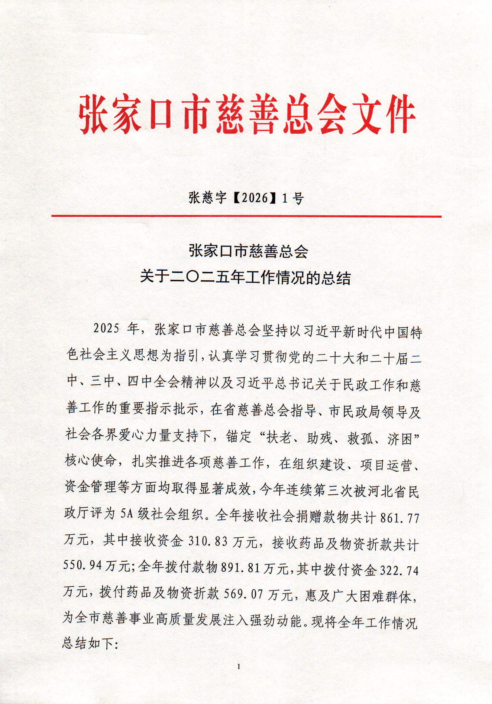 张家口市慈善总会关于二〇二五年工作情况的总结